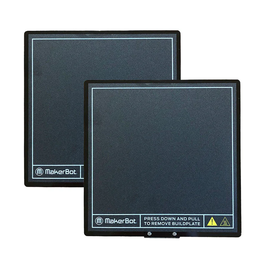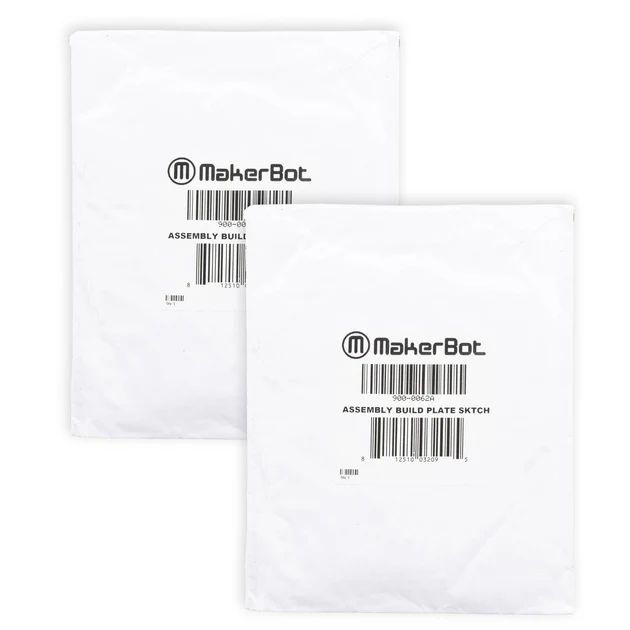 2-pack of flexible, removable build plates for MakerBot SKETCH. Designed for easy part removal, reliable adhesion, and efficient project swapping—perfect for classrooms and shared use.